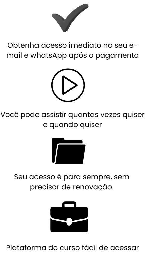 O curso é 100% em video aulas online passo a passo, para você fazer onde quiser e a hora que puder.