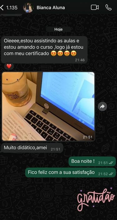 Ao concluir todas as aulas do curso, você poderá solicitar os certificados e enviá-los por e-mail. Podendo imprimir e emoldurá-los.